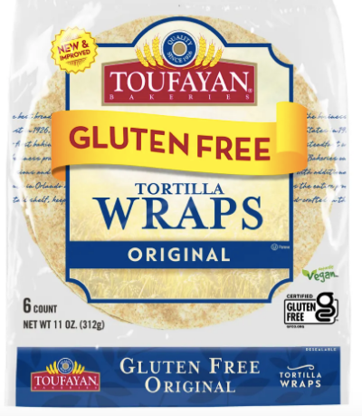 Toufayan Gluten Free Original Tortilla Wraps use only high quality, wholesome ingredients. Absolutely delicious, you can’t even tell they are Gluten Free! Our Gluten Free Wraps are Kosher Pareve and Naturally Vegan. Each wrap has 4g of Protein, 0g of Trans Fats and 0mg of Cholesterol.
